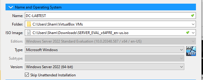- Make sure to check skip unattended install as I will teach you how to set this up in Section 3.3. I will attach a screenshot below