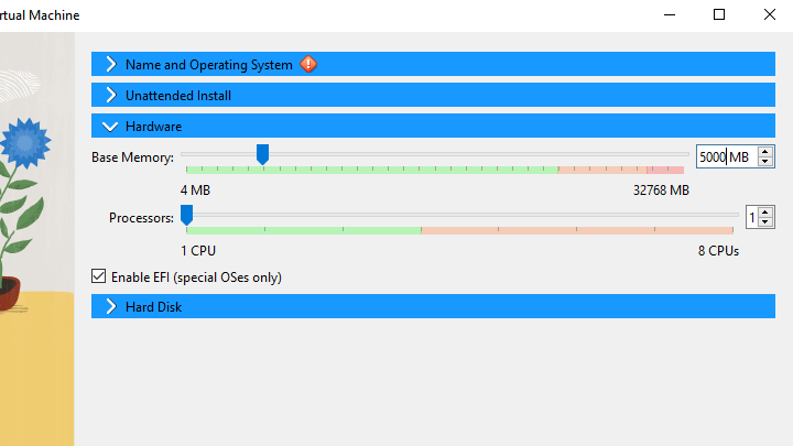 - This section will focus on how many RAM and how many CPU processors the VM will use.