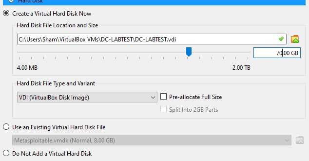 - This will be your Hard disk space the VM will have
