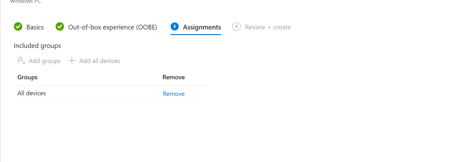 3) Assignments - In this stage we do the assignments which is the devices that this profile will apply to.