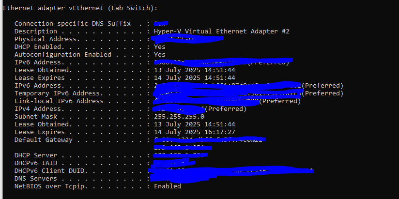 Step 1 - Run ipconfig /all on your Host Machine